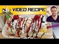 Cut the banana in half lengthwise and lay it on a long dish (which is usually called \"boat\"), with the inside of the b...